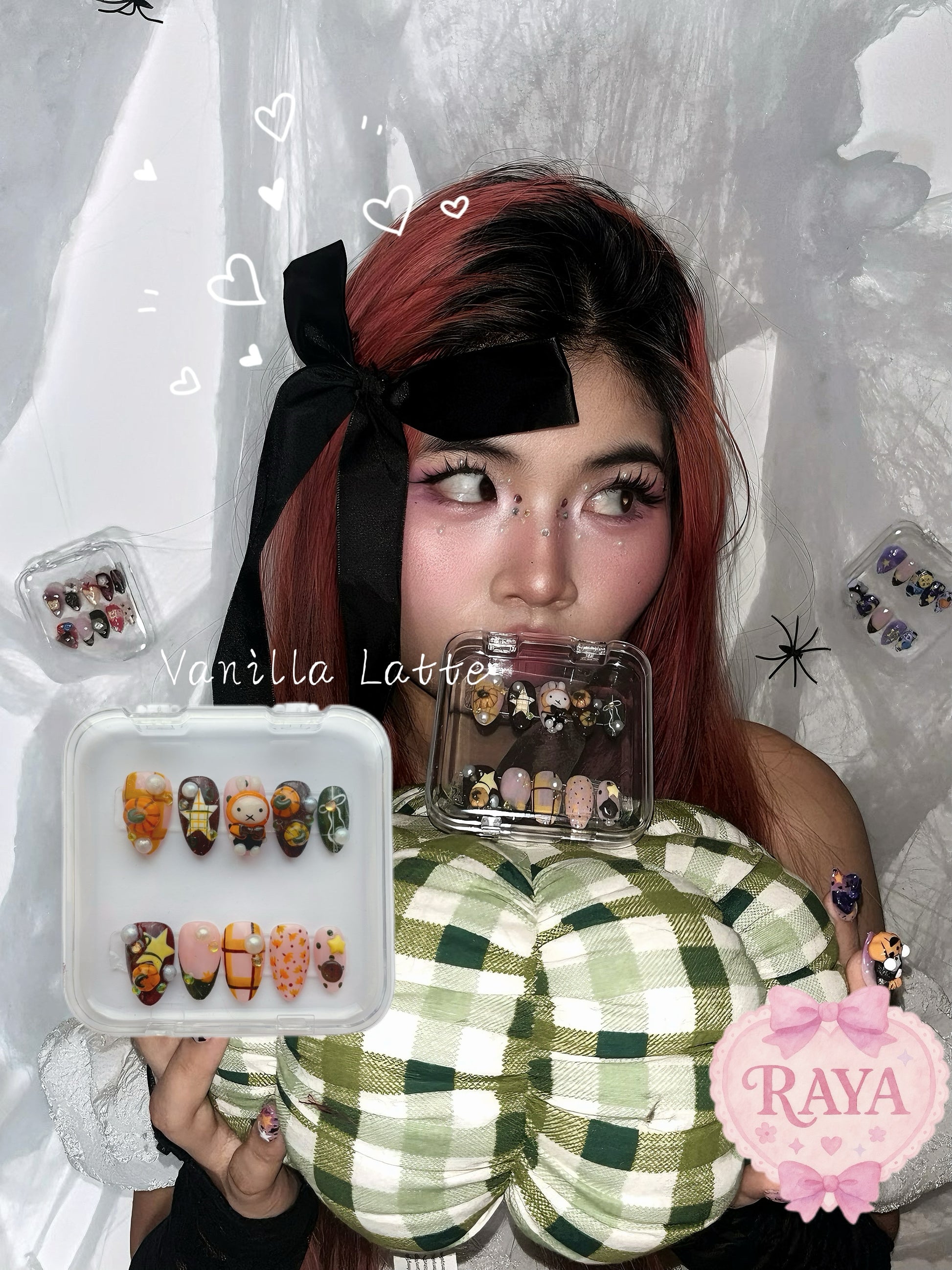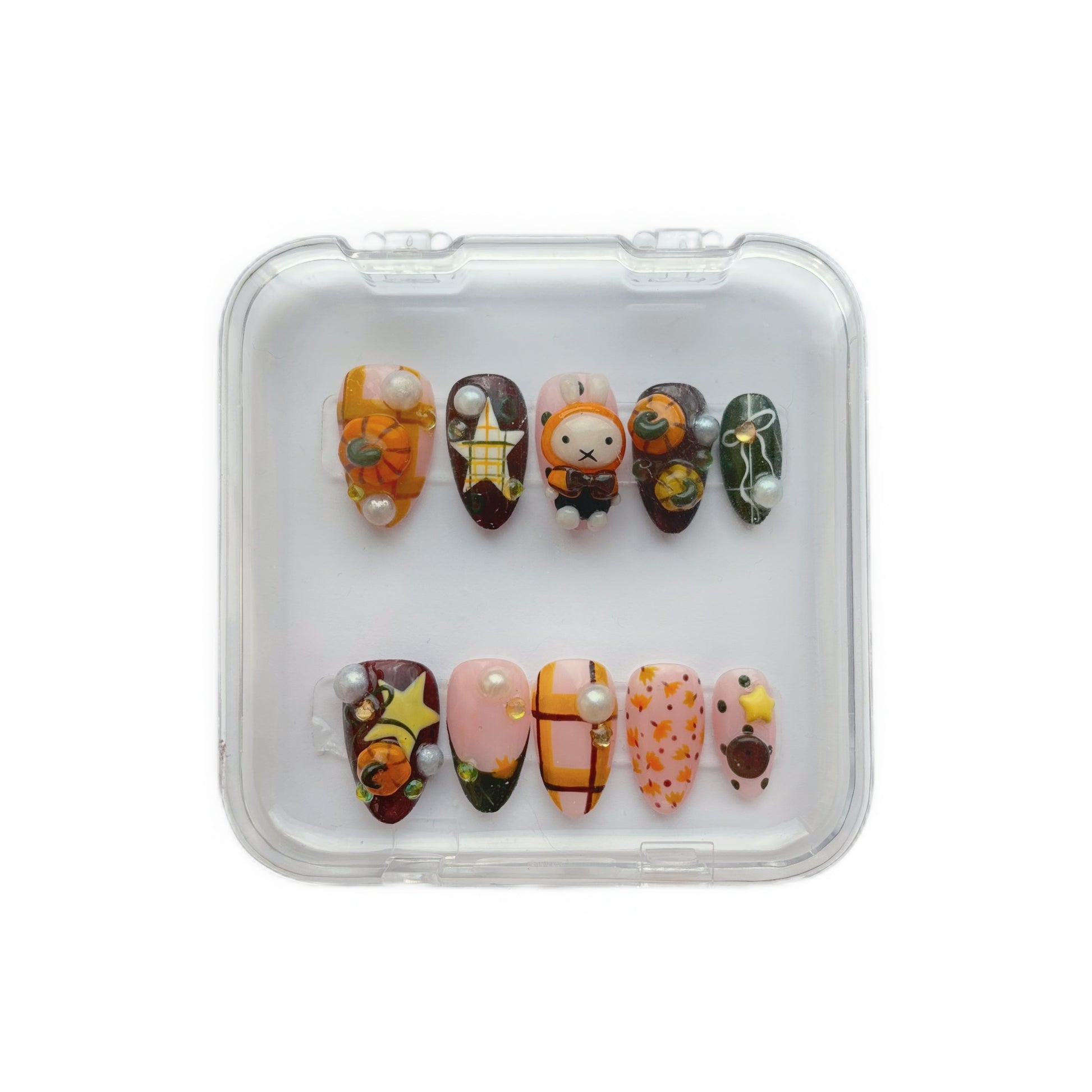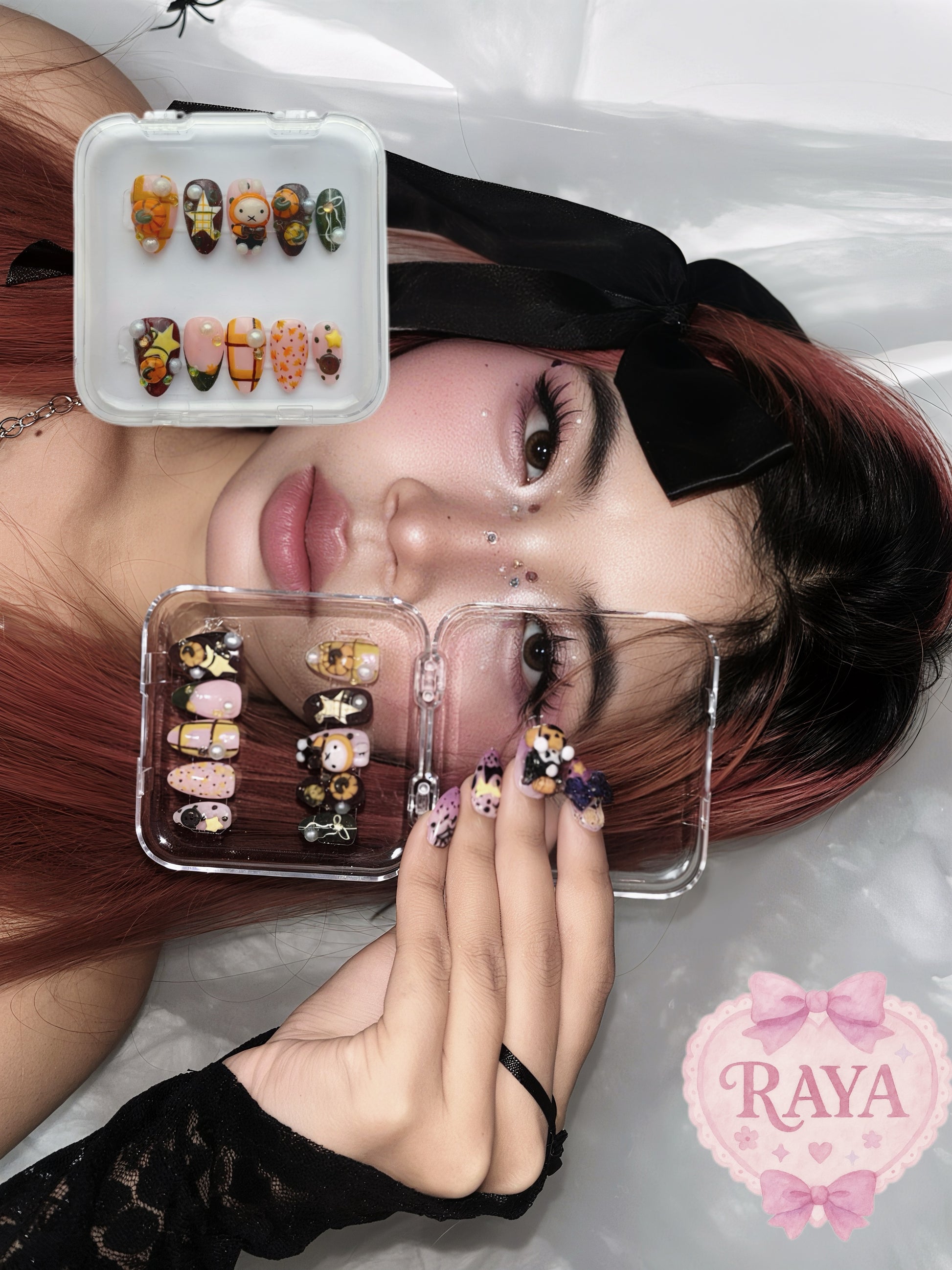 Comes in a clear organiser case for storing the nails, and all complimentary tools necessary for wearing the design – sticky tabs x 24 pcs in 12 sizes, 2g nail glue x 1, cuticle tool x 1, dehydrating wipe x 1, nail file x 1.