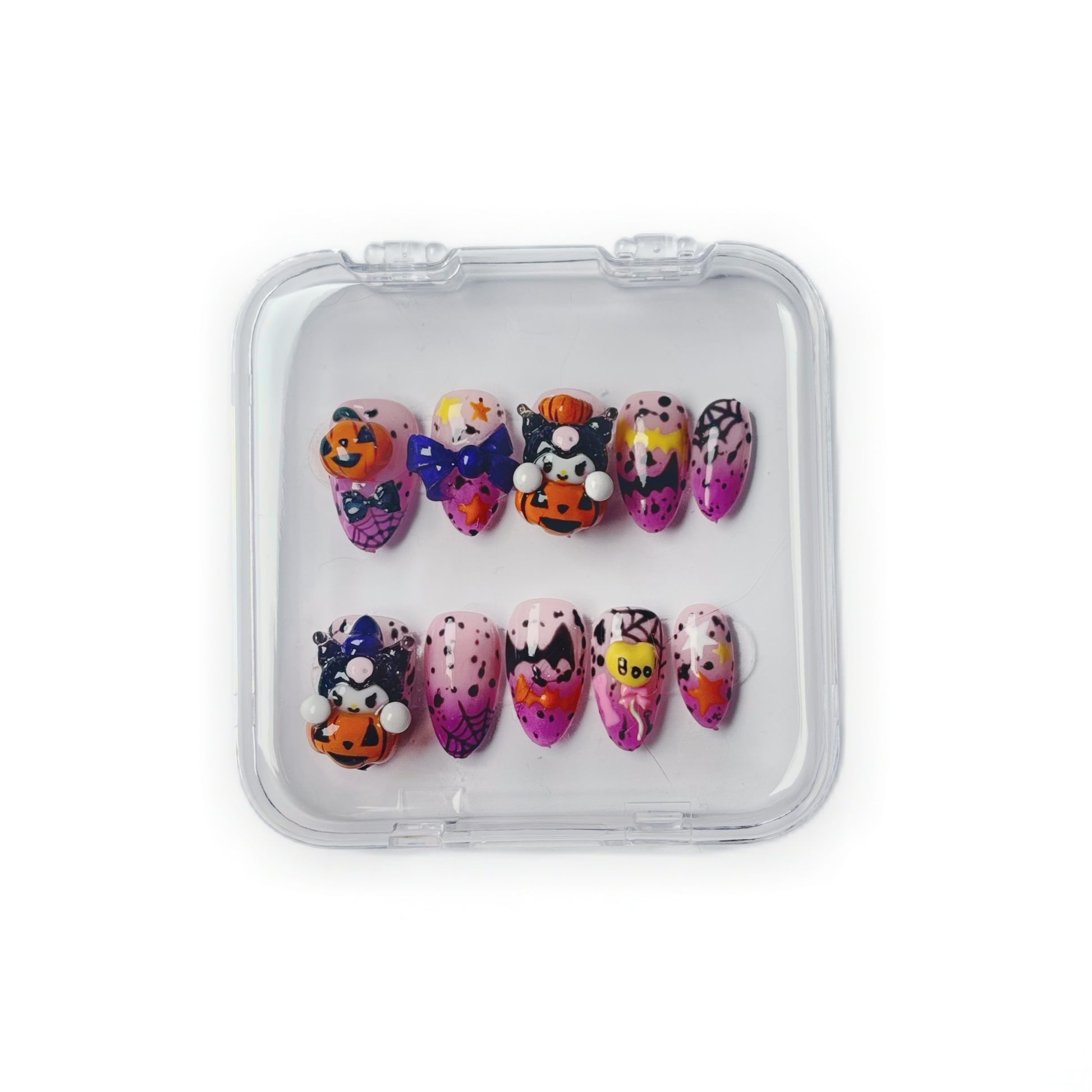 Comes in a clear organiser case for storing the nails, and all complimentary tools necessary for wearing the design – sticky tabs x 24 pcs in 12 sizes, 2g nail glue x 1, cuticle tool x 1, dehydrating wipe x 1, nail file x 1.